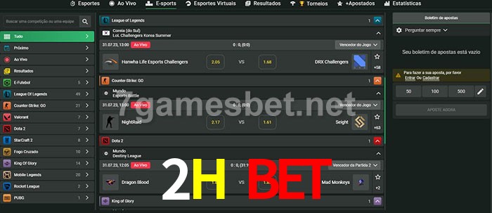 O 2H Bet oferece uma grande seleção de opções de apostas em e-sports com probabilidades competitivas